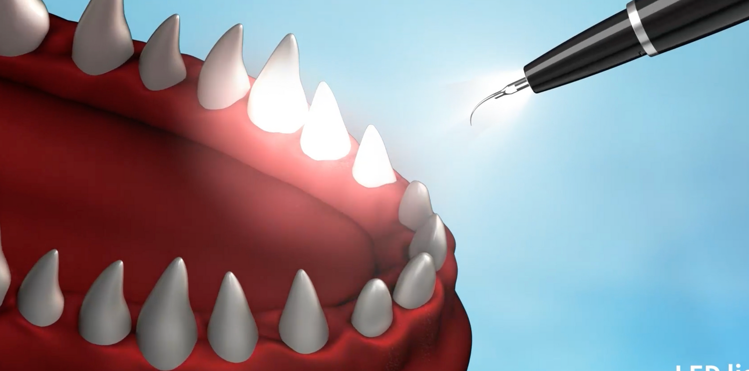 : It’s ultrasonic, not a scraper. It only works on hardened tartar not enamel or gums.